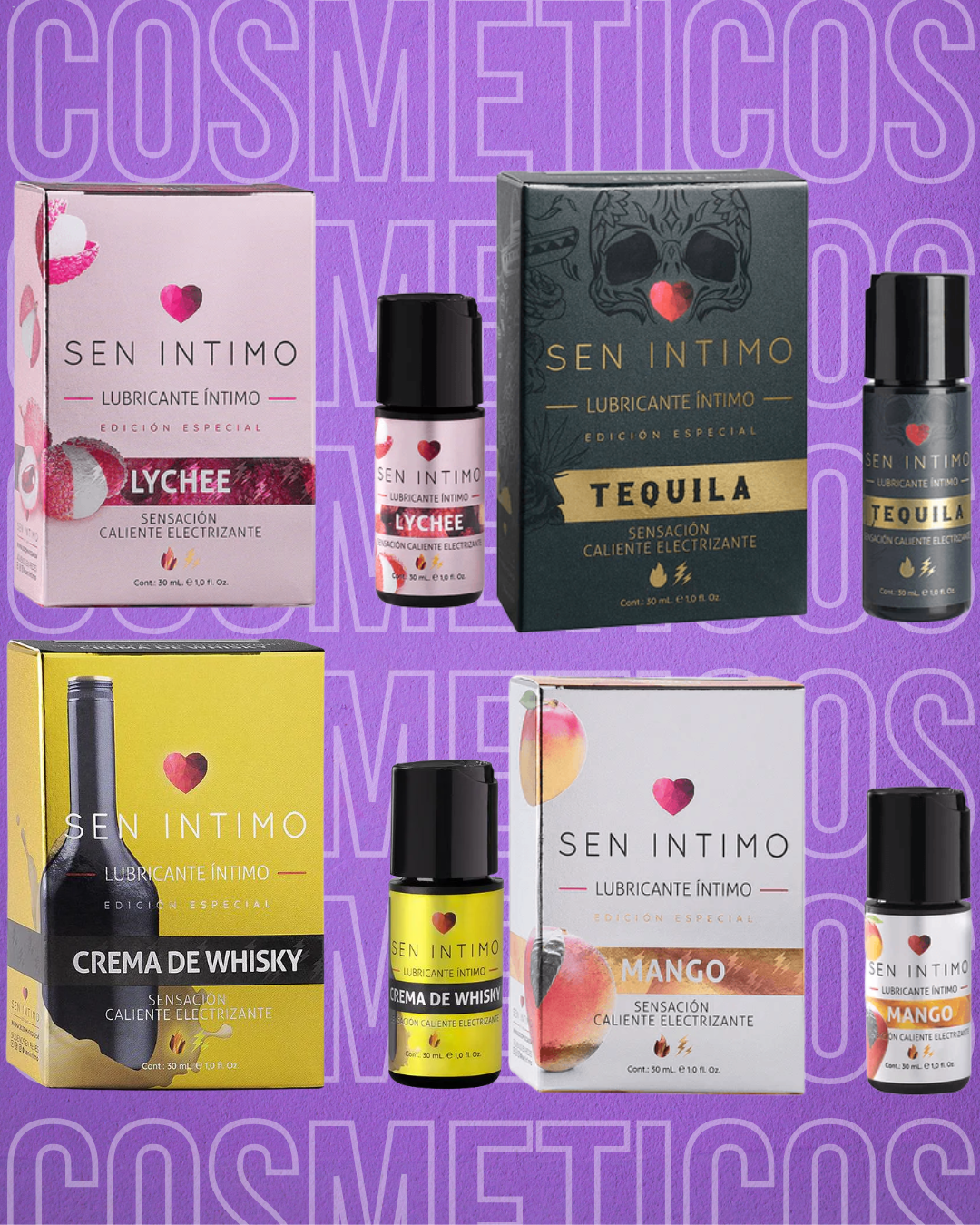 👅 Sabores exóticos y provocadores Disponible en Lychee, Crema de Whisky, Mango y Tequila. Explora con tu lengua, juega con tus sentidos.