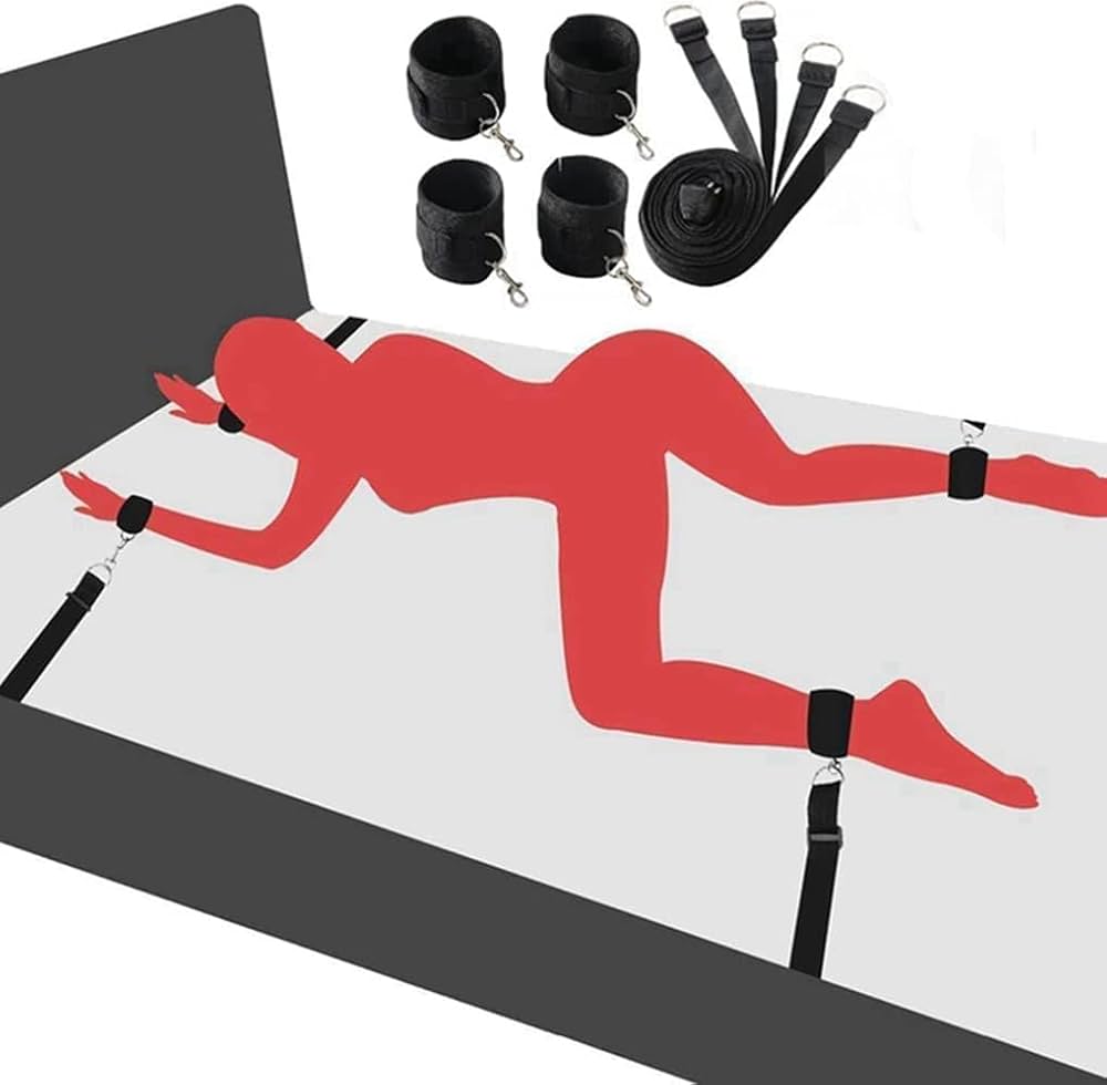 Convierte tu cama en el escenario perfecto para el juego de la sumisión y el control con este sistema de amarre diseñado para quienes desean explorar el BDSM de forma cómoda, segura y excitante.