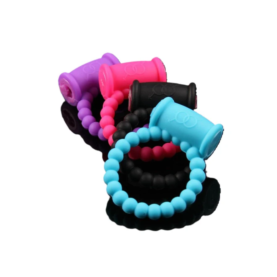 Anillo para el pene, apreta la base logrando que la erección sea más fuerte. Su vibración estimula el clítoris.