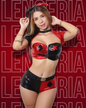 Un look atrevido y lleno de actitud, inspirado en la irreverencia y sensualidad de Harley Quinn. Ideal para quienes disfrutan robar miradas sin pedir permiso.