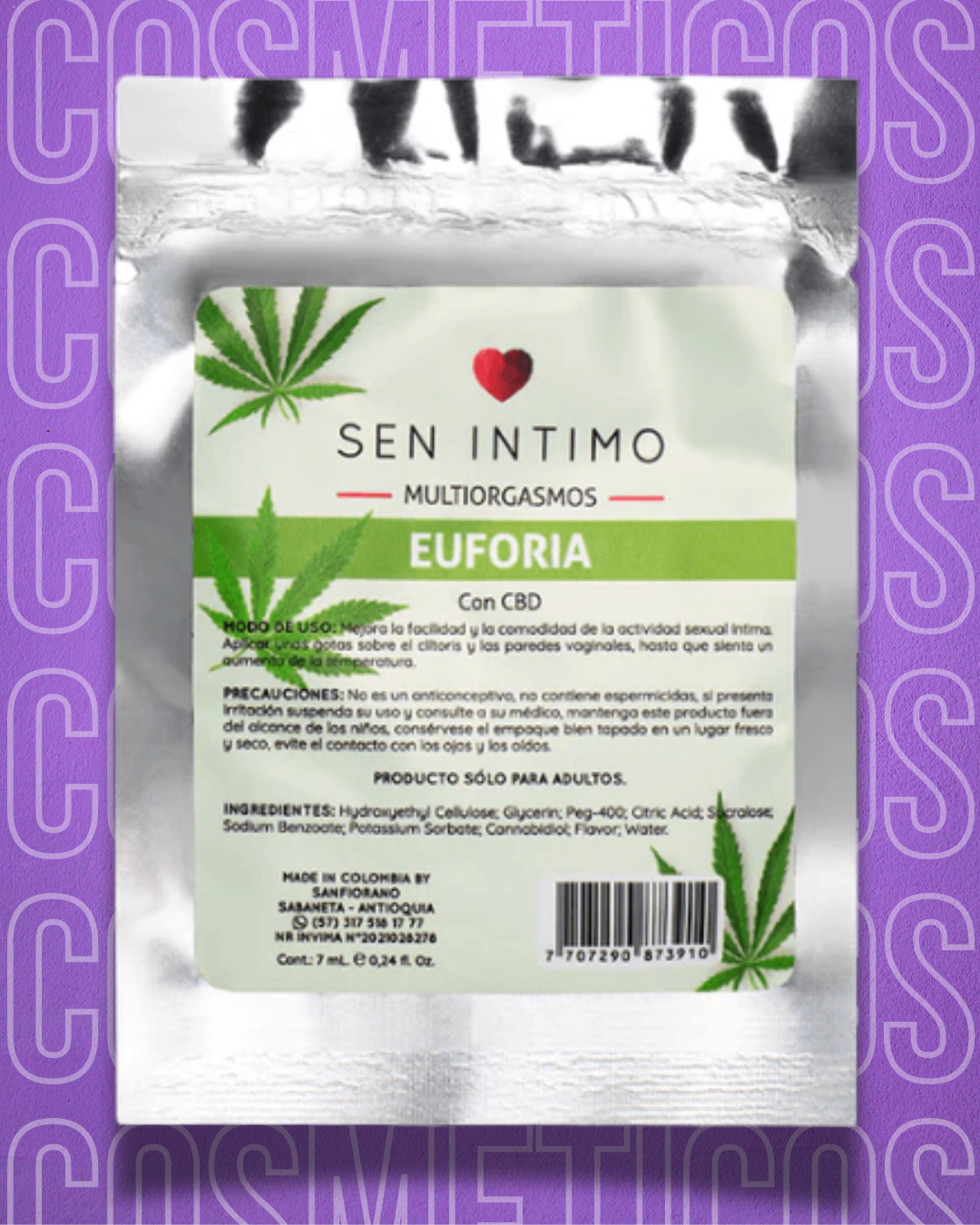 El Multiorgasmo Euforia en presentación sachet está formulado para liberar una experiencia intensa y progresiva. Su contenido de CBD (cannabidiol) relaja, sensibiliza y potencia las terminaciones nerviosas, facilitando una conexión más profunda con tu cuerpo y provocando orgasmos más intensos y duraderos.