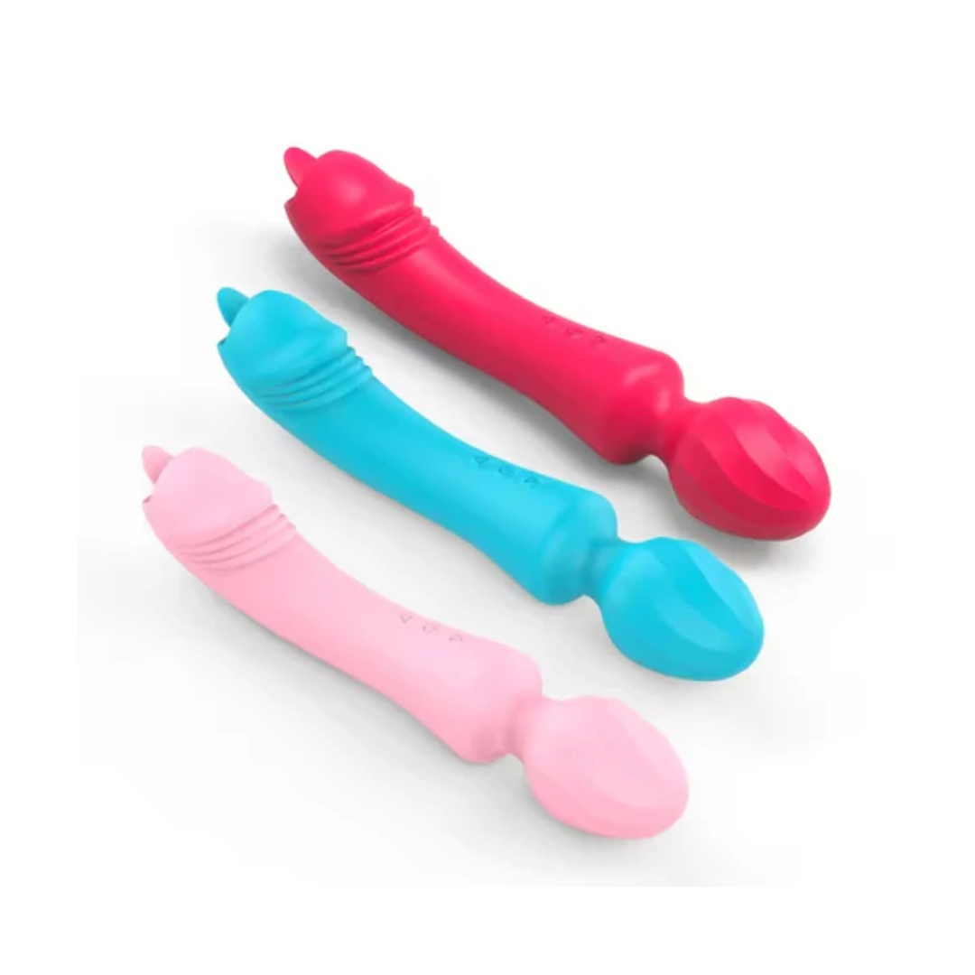 Masajeador clitorial doble función, en su parte superior cuenta con el masajeador clitorial y en la parte inferior con un vibrador tipo lengua con movimientos, será tu juguete favorito.